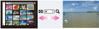 一覧表示、1枚再生を切り換えながら選ぶには一覧表示時にW/T(ズーム)ボタンT側の