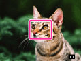 静止画撮影で半押ししたときには、ピントが合ったエリアに緑色の枠が表示される。