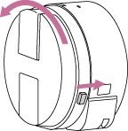 取りはずしレバーをレンズ側に動かして、スマートフォンアタッチメントを回す