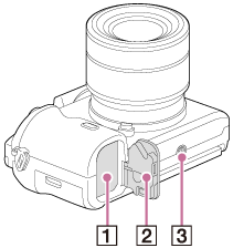 ACアダプターAC-PW20(別売)を使うときに使います。バッテリー挿入口に接続プレートを入れ、図のように接続プレートカバーからコードを出します。