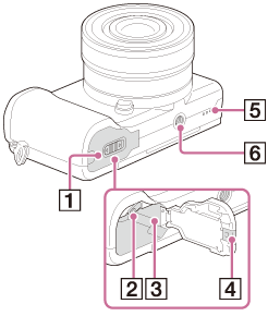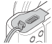 - ACアダプターAC-PW20(別売)を使うときに使います。バッテリー挿入口に接続プレートを入れ、図のように接続プレートカバーからコードを出します。