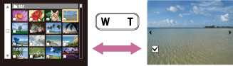 一覧表示時にTボタンを押すと1枚表示に、1枚再生時にWボタンを押すと一覧表示になります。