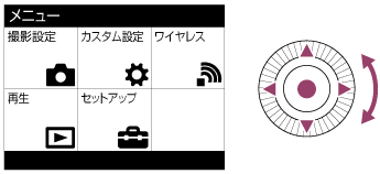 3. コントロールホイールの上/下/左/右ボタンを押す、またはコントロールホイールを回して設定したい項目を選び、中央のを押す。