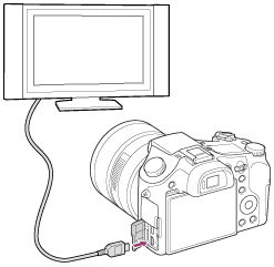 本機の画像をテレビで見るには、HDMIケーブル(別売)とHDMI端子のあるハイビジョンテレビが必要です。