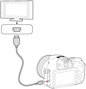 - 本機のHDMIマイクロ端子とテレビのHDMI端子をHDMIケーブル(別売)で接続する。