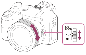 - シャッターボタンを半押ししたまま、マニュアルリングを回してピントを調整する。