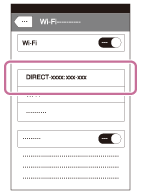 iPhoneまたはiPadのWi-Fi設定画面で本機(DIRECT-xxxx:xxxx)を選ぶ。