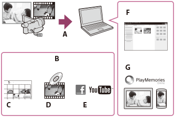 撮影した動画、静止画を、パソコンに取り込んで閲覧や活用ができます。 XAVC S動画、AVCHD動画をパソコンに取り込む場合はPlayMemories Homeが必要です。