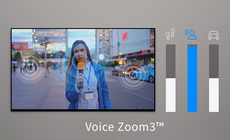 新しいボイスズーム3™機能は、AIで人間の声を認識し、声の音量を調整できるため、小さな声でのセリフもクリアに聞こえます。ホームシアター製品との連携にも対応しています6。