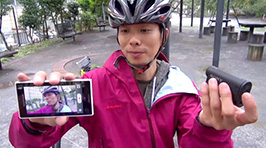 スマホがあれば、ワイファイ経由で無線での操作ができるので、既にハンドルに取り付けた状態でも防水ケースから出すことなくアングル調整や、撮影した映像をチェックできる。もちろん自転車に跨った状態でもポケットから取り出してすぐ操作できるのでとても便利でした。サイクリングのシチュエーションにぴったりだと思いました。
