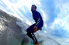ウォータープルーフケースに入った状態でも、スタート/ストップボタンの操作がしやすくていいですね。初めは撮りっ放しにしていたのですが、途中から波を待っている間はオフにして、波が来たらスタートボタンを押すようにしました。突然入ってくる波にも対応でき、一度もミスることなく撮影できましたよ。そうすると後で再生したときに、いらない映像が減って見やすいですね。本体の大きさ、重さも申し分ありません。まったく邪魔になりませんでした。