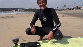 サーフボードの前にカメラを付けて、自分に向けて広角で撮ると全身が映るので、フォームや立ち居地、身体の動かし方などがチェックできて、サーフィンの勉強になるのがいいですね。私はサーフィンスクールをやっていますが、生徒さんにもぜひお薦めしたいです。