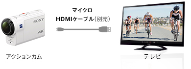 アクションカムとTVをマイクロHDMIケーブルで接続するだけで、かんたんに映像を見返して楽しむことができます。