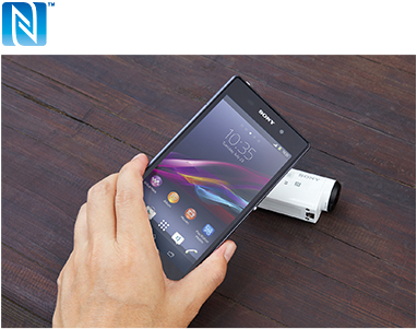 NFCを搭載。NFC対応スマートフォンをかざすだけで、パスワード入力が不要でカンタンに自動接続が可能。PlayMemories Mobileを自動で起動し、画角の確認やリモコン操作ができます。