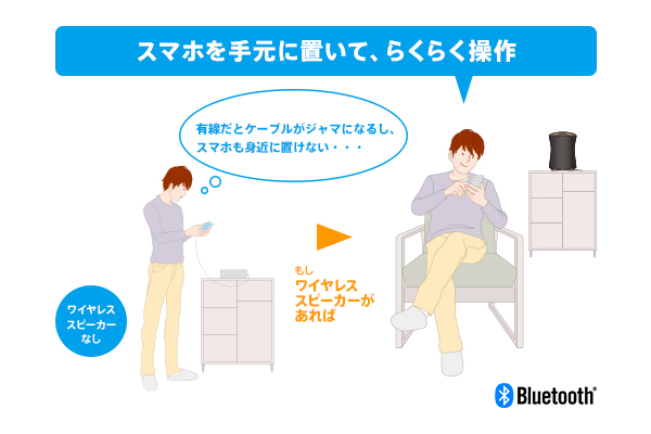 Xperia(TM) などのAndroid搭載スマートフォン、iPhone、ウォークマンなどに保存した音楽をワイヤレスで高音質にしかも快適に楽しめます。