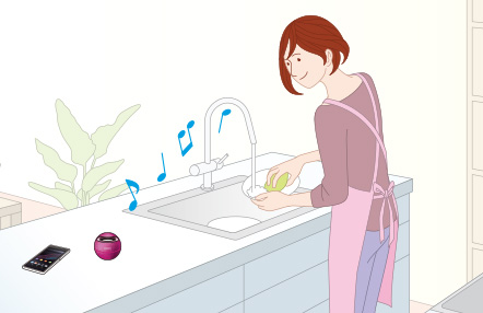 ワイヤレスで音楽を再生できるので、Xperia(TM)やiPhoneなどのスマートフォン、タブレットなどで音楽を聴きながら手もとでインターネットやTwitter、Facebookなどのアプリケーションを楽しんだり、YouTubeやワンセグなどの動画を、スピーカーの迫力のサウンドで楽しめます。