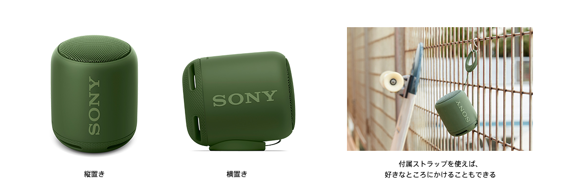 縦置きに加えて、付属のストラップを使って横置きにも対応。リスニング環境に合わせて自分の好みの置き方を選択できます。