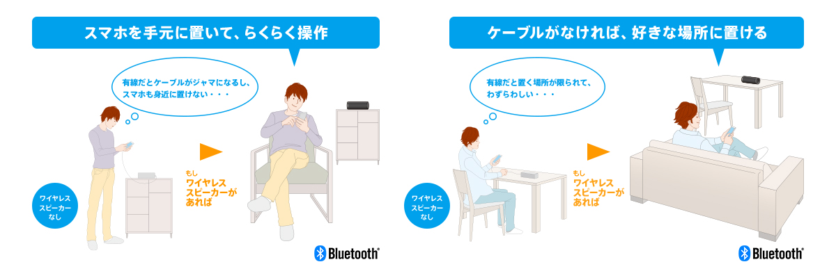 Xperia(TM) などのAndroid搭載スマートフォン、iPhone、ウォークマンなどに保存した音楽をワイヤレスで高音質にしかも快適に楽しめます。