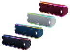 スピーカー筐体前面部分が光るライティング機能を搭載。前面のラインライトとストロボフラッシュが曲に合わせて光り、シーンに合わせてその場の雰囲気をさらに盛り上げる。