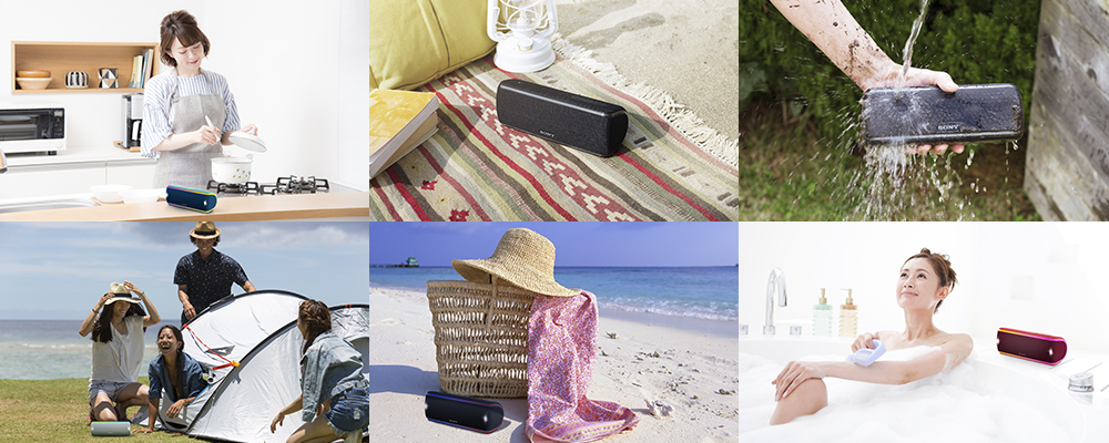 防水(*1)対応で、お風呂やキッチンでも音楽を楽しめます。防塵(*2)対応かつサビにも強いので、海やアウトドアでも使えます。IP67(*1 *2)に対応。