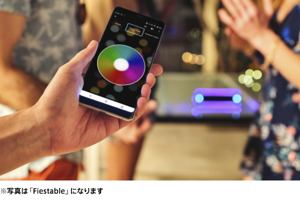 「Music Center」や「Fiestable」とはスマートフォンやタブレットから、対応のワイヤレススピーカーを操作するためのアプリです。Xperia(TM) などのAndroid(TM)搭載スマートフォンやiPhoneに「Music Center」や「Fiestable」をダウンロードすると、「Music Center」ではスマートフォンの音楽を再生・停止したり、「Fiestable」ではイルミネーションの変更ができます。