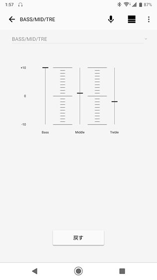 無料アプリ「Music Center」を活用することで、自由なイコライザー設定が可能。好みに合わせて、Bass/Middle/Trebleなどを自由自在に調整することで、音楽をより楽しめます。