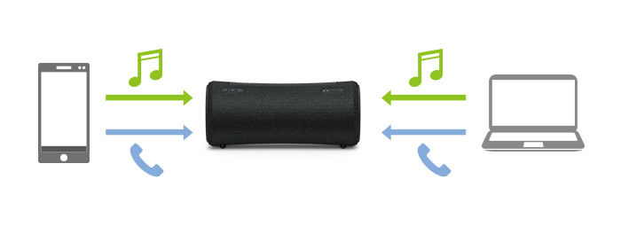 2台の機器と同時接続し、それぞれで通話も音楽も受信できる新しいマルチポイント接続に対応。例えばスマートフォンで音楽を聴いた後、停止し、PCで音楽再生を始めるだけで再生機器を切り替えられます。スマートフォンが電話を着信した際には自動でスマートフォンの通話に切り替わり、そのままハンズフリー通話をすることも可能。2台の機器でスピーカーを使う場面で接続の切り替えがいらず、快適にご使用いただけます。