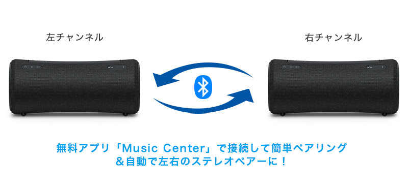 SRS-XG300を2台一緒につなげてBluetooth接続することで、ステレオ再生で音楽を楽しめます。