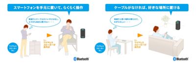 スマートフォン、iPhone、ウォークマン(R)などに保存した音楽やストリーミングの音楽をワイヤレスで高音質にしかも快適に楽しめます。