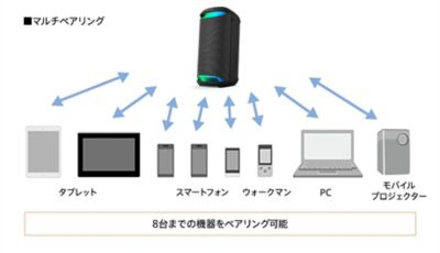 8台までの機器とペアリングできるマルチペアリングに対応。よく使う機器と一度ペアリングしておけば、2回目からのBluetooth接続がかんたんになります。