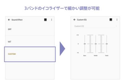 専用スマートフォンアプリ「Music Center」を活用することで、イコライザー設定が可能。好みに合わせて、Bass/Middle/Trebleなどを自由自在に調整することで、音楽をより一層楽しめます。