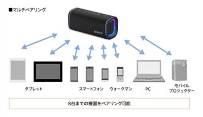 8台までの機器とペアリングできるマルチペアリングに対応。よく使う機器と一度ペアリングしておけば、2回目からのBluetooth接続がかんたんになります。