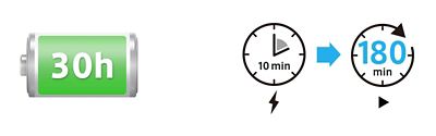 家での音楽視聴時はもちろん、アウトドア時にも丸一日以上使用可能な約30時間(*)のロングバッテリーを搭載。また、10分の充電で180分使用可能な急速充電にも対応し、急な持ち出し時にも安心です。