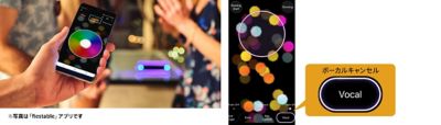 「Music Center」ではイコライジング機能の操作やステレオ再生の設定ができ、「Fiestable」では様々なサウンドエフェクトやイルミネーションの変更を楽しめます。また、ボーカルキャンセルにも対応し、マイクが接続された状態でアプリを操作することで、お手元の楽曲をオフボーカルで再生可能です。