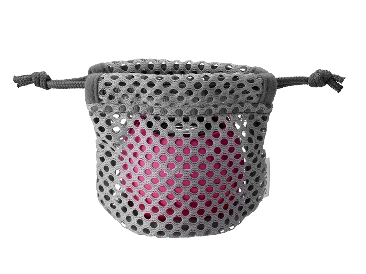 スピーカー本体の持ち運び用にキャリングポーチを付属。メッシュ素材なので、ポーチに入れたままでもワイヤレスで音楽の再生が可能。バッグやパンツにぶらさげたままでも音楽が楽しめます。