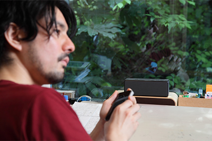 あと、ハンズフリー通話機能も使ってみたんですけど、技術の進歩ってすごいですね(笑)。『SRS-X3』を机の前に置いて話をしていても、違和感なくしっかり会話できました。これなら、たとえばペン入れをしながらでも電話ができますから、僕みたいな机に向かって仕事をする人にはもってこいじゃないですか?むしろなぜ今まで導入しなかったんだろうと思うくらい