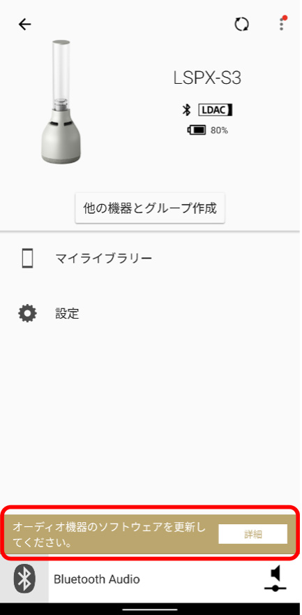 グラスサウンドスピーカー「LSPX-S3」ソフトウェアアップデート手順