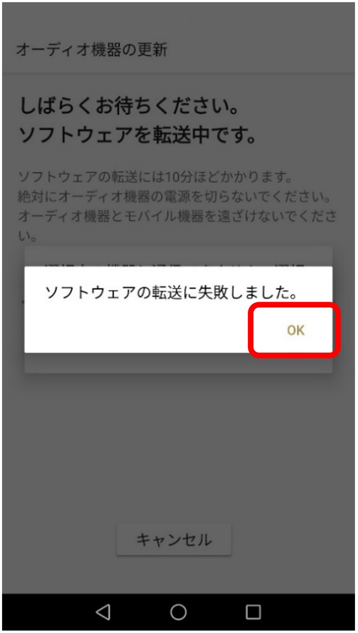 5 アップデートが存在する場合は、「オーディオ機器のソフトウェアを更新してください。」と表示されます。
