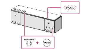 FUNCTIONボタンとUPDATE/WPSボタンをスピーカーからピピッという音が聞こえるまで、同時に押したままにしてください。