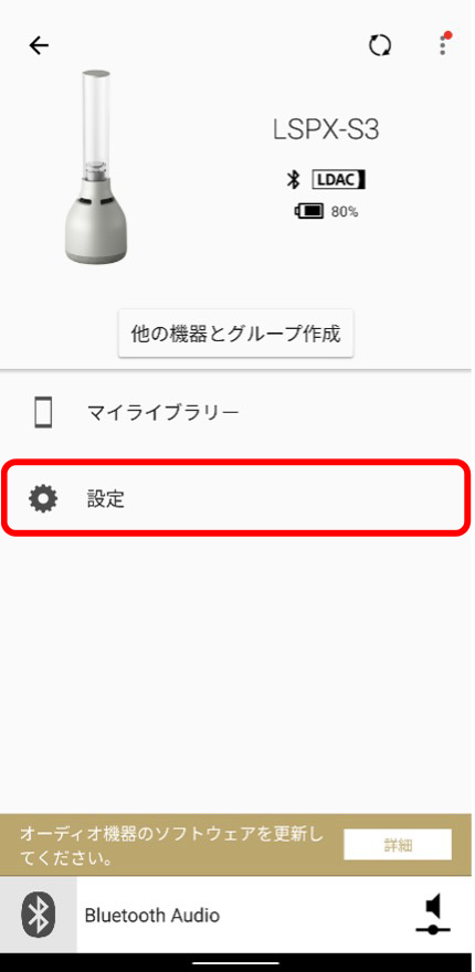 「Sony | Music Center」アプリとバージョン確認を行うLSPX-S3と接続してください。