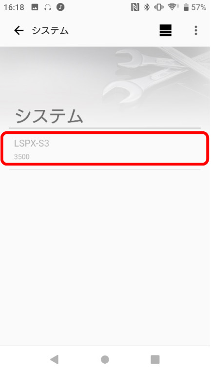 バージョンの確認を行ってください。(“LSPX-S3”の下にある数字が、バージョンです。画像はバージョン3500の時の例です)