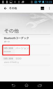 バージョンの確認を行ってください(“SRS-X88バージョン”の下にある数字が、バージョンです)