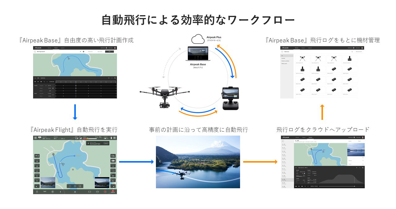 玉川お客様のワークフローは、プリフライト(飛行前)、フライト(飛行中)、ポストフライト(飛行後)の3つのステップに分けられるのですが、「Airpeak Base」はそのうち、プリフライト、ポストフライトの作業を担うものだと位置付けています。