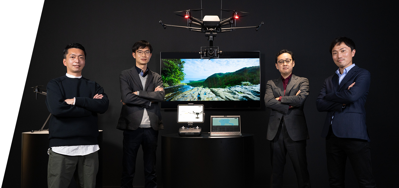 機体と送信機、モバイルアプリ「Airpeak Flight」に、クラウドサービス「Airpeak Plus」、Webアプリ「Airpeak Base」を組み合わせることで、これまでのドローンでは生み出せなかった新たな価値を創出した「Airpeak S1」。ドローンを使った映像制作のワークフローを改革する可能性を秘めた自動飛行機能とはどのようなものなのか? そのソフトウェア、クラウドサービス開発に携わったメンバーに聞きました。