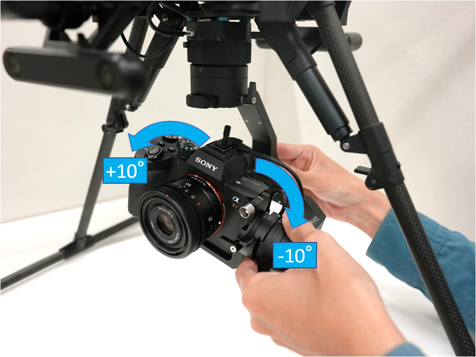 ROLL軸の調整の際は、PAN軸が動かないように手で保持しながら、 ROLL軸を±10度動かします。