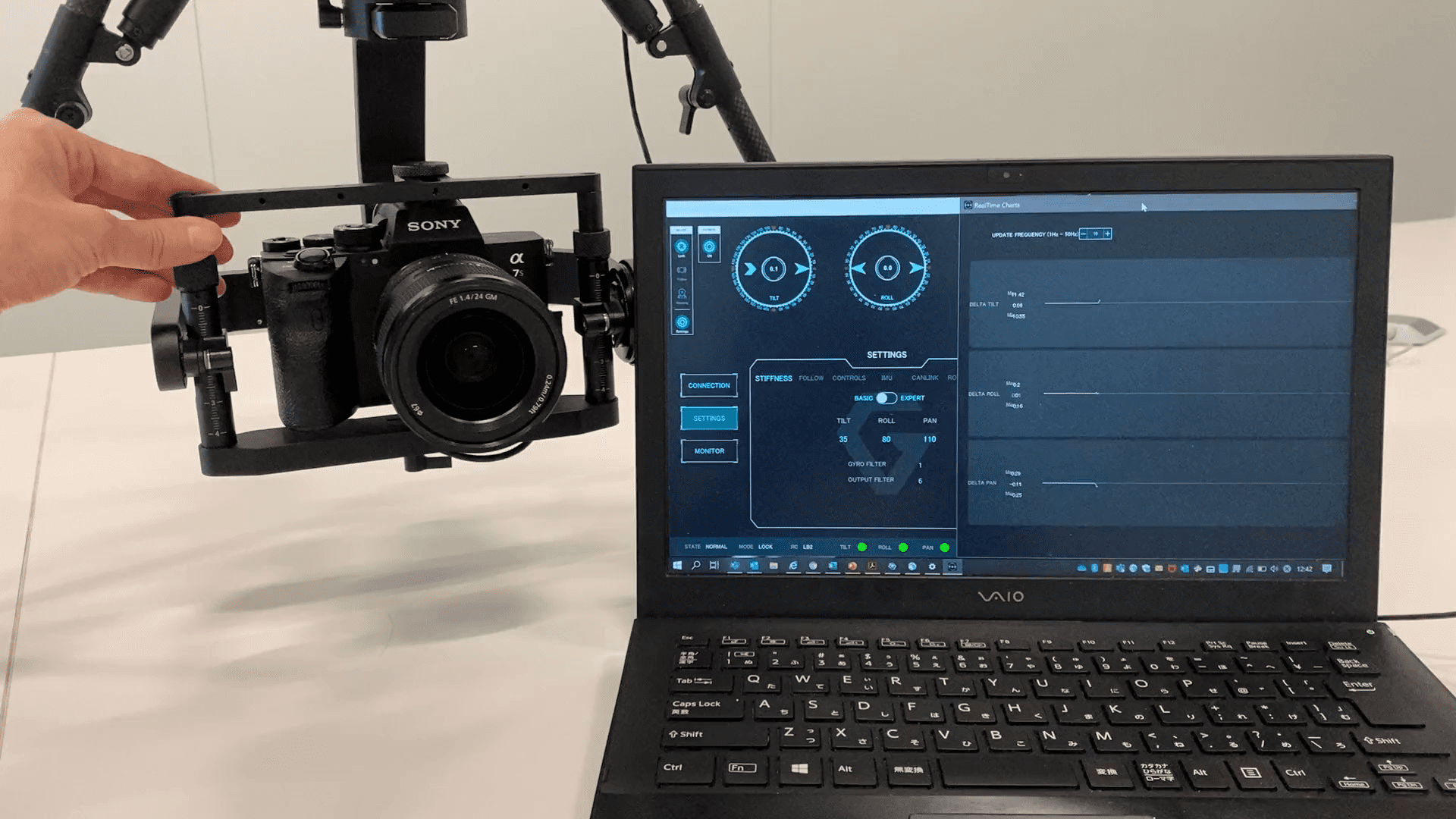 「gTuneDesktop」はGremsy社製ジンバルと接続し、