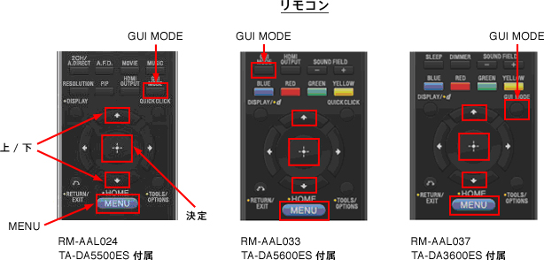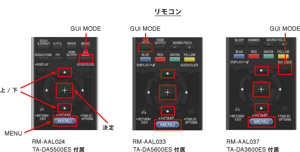 リモコンの[GUI MODE]ボタンを押し、レシーバーの表示窓の表示を[GUI MODE OFF]に切り替えます。