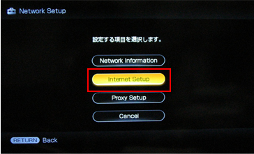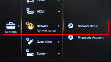 ・本機のメニュー画面で [Settings] - [Network] - [ Network Setup] を選択する。