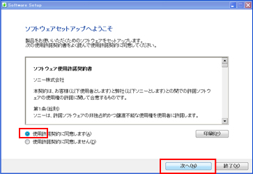 ・「使用許諾契約に同意します」を選択して [次へ] をクリックする。