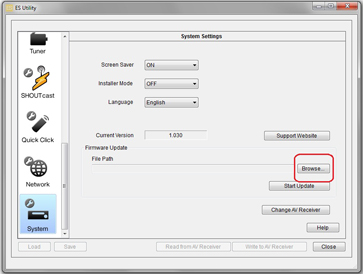 [Browse] ボタンが現れない場合は、手順5.の 「本機のPC update準備」 の項目をもう一度ご確認ください。